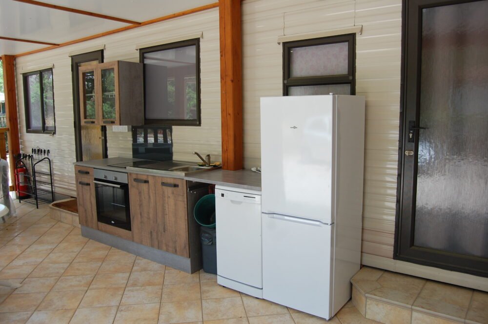 TERRASSE EN BOIS AVEC CUISINE D'ETE, COIN REPAS, SALON